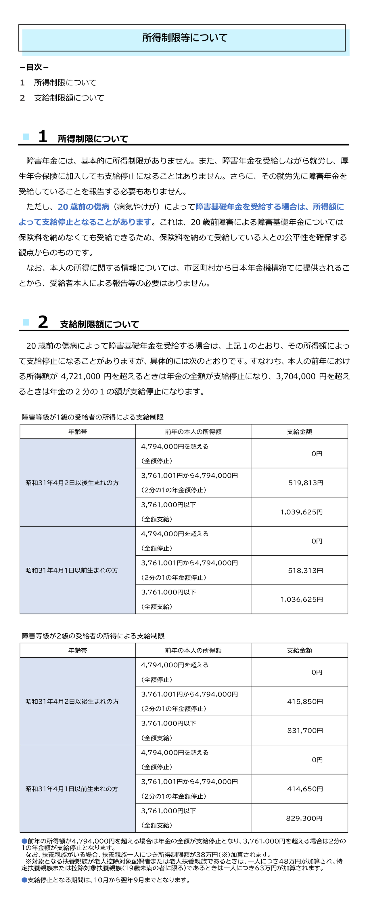 障害年金の所得制限等